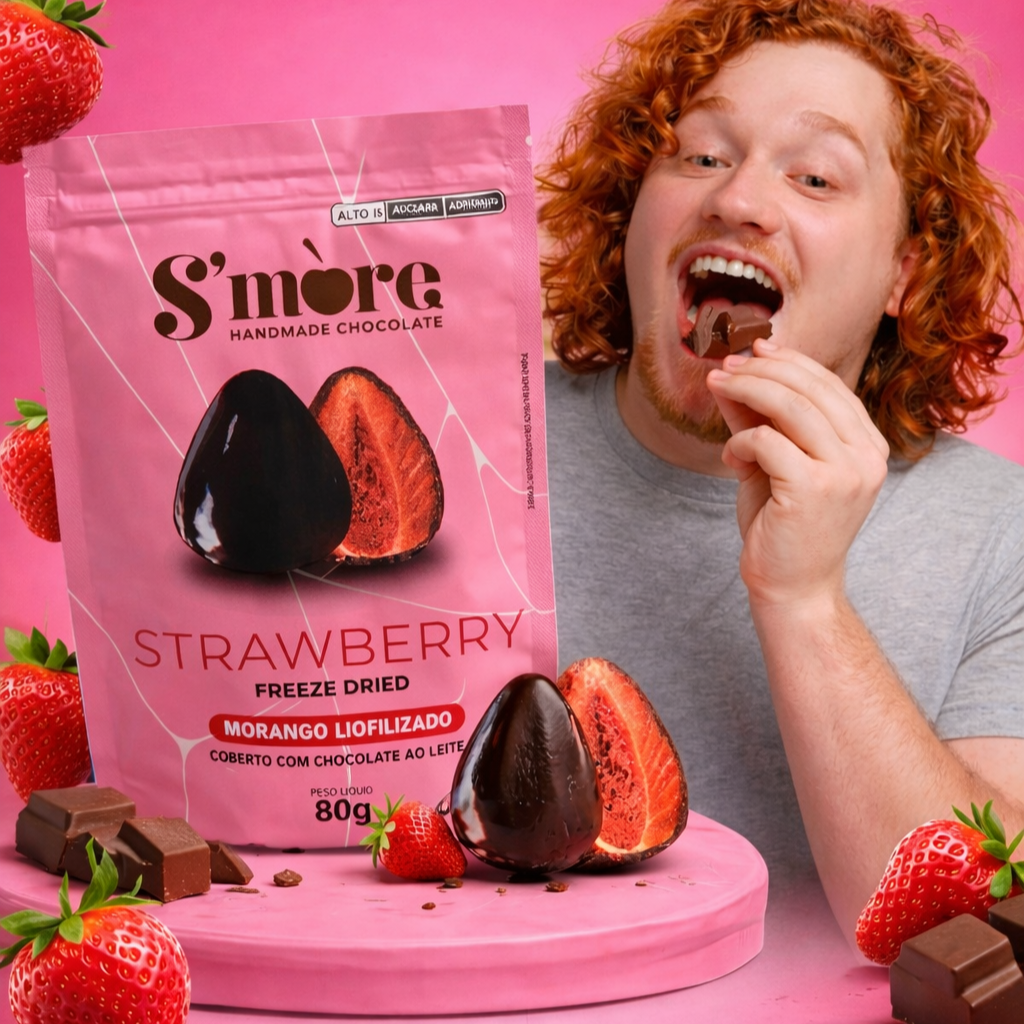 O equilíbrio perfeito entre o chocolate cremoso e a crocância real do morango.